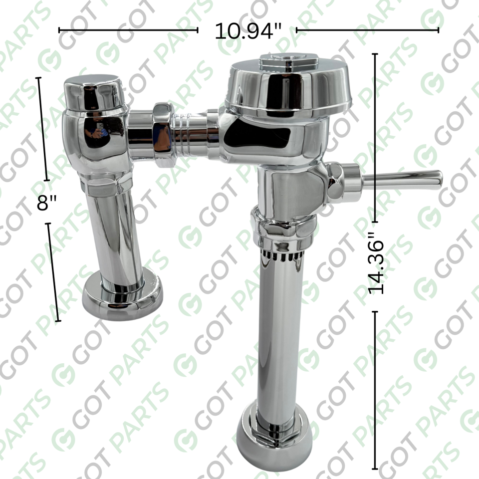 Polished Chrome Finish, Fixture Connection Top Spud, Single Flush, Exposed Manual Water Closet Flushometer