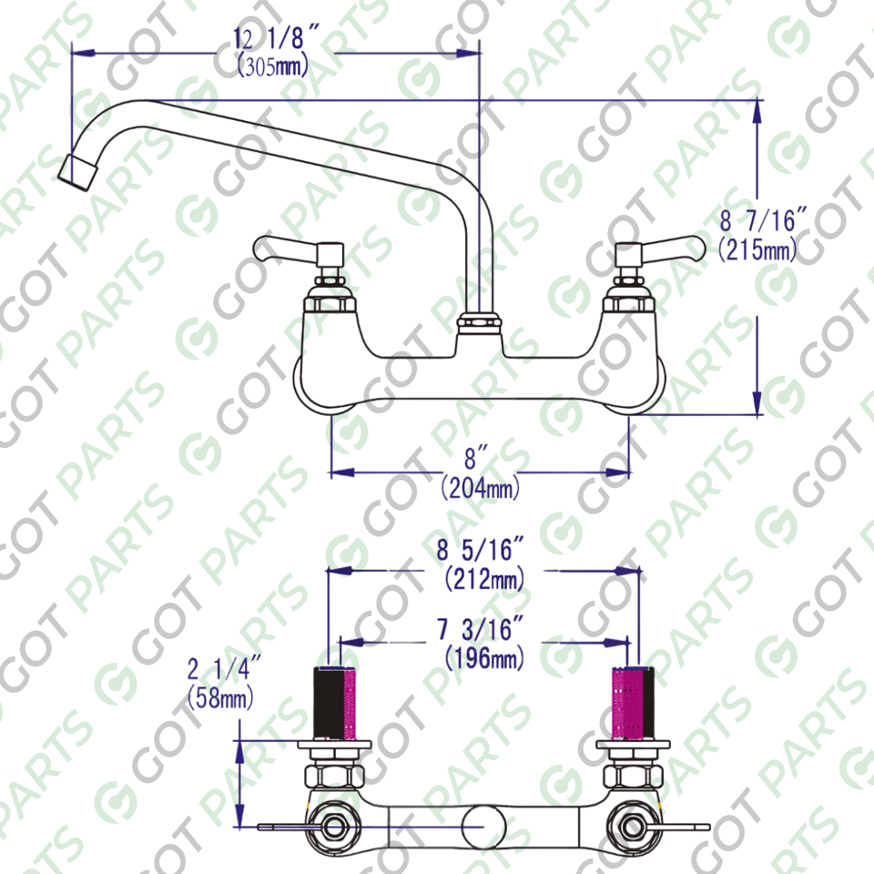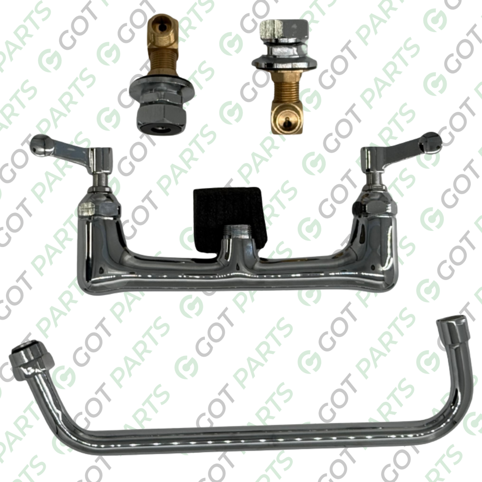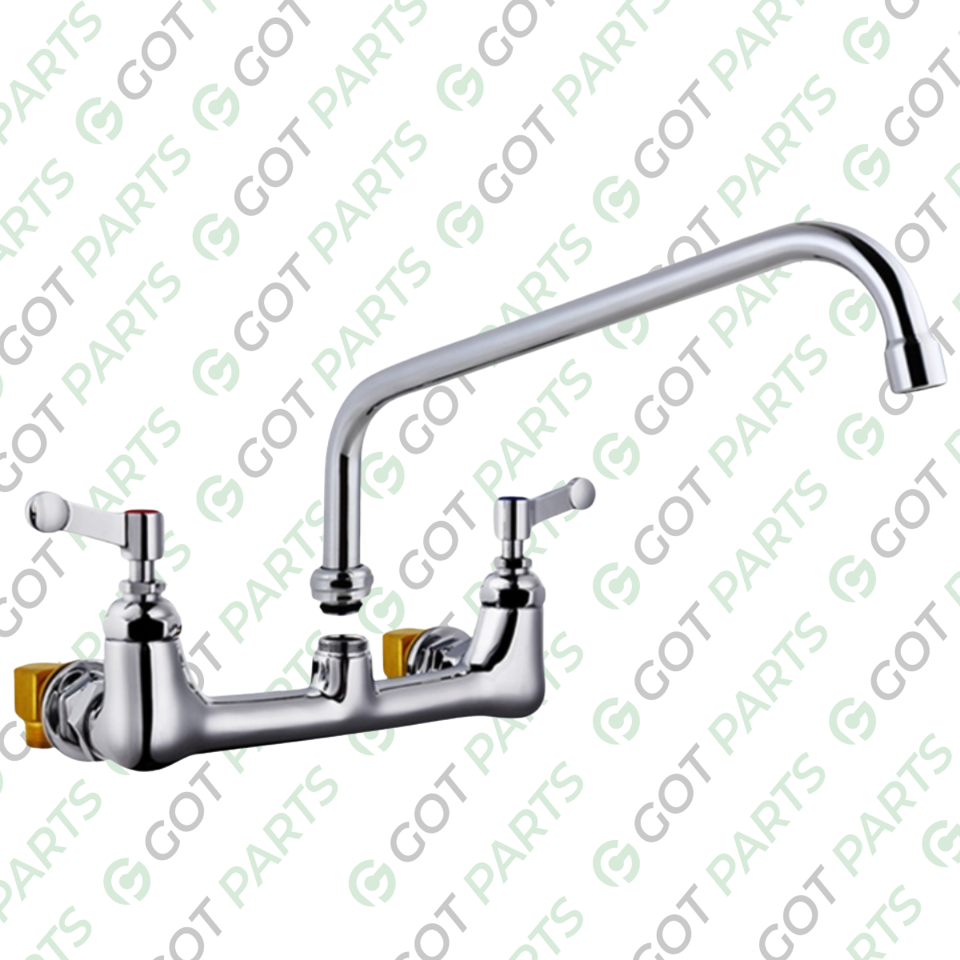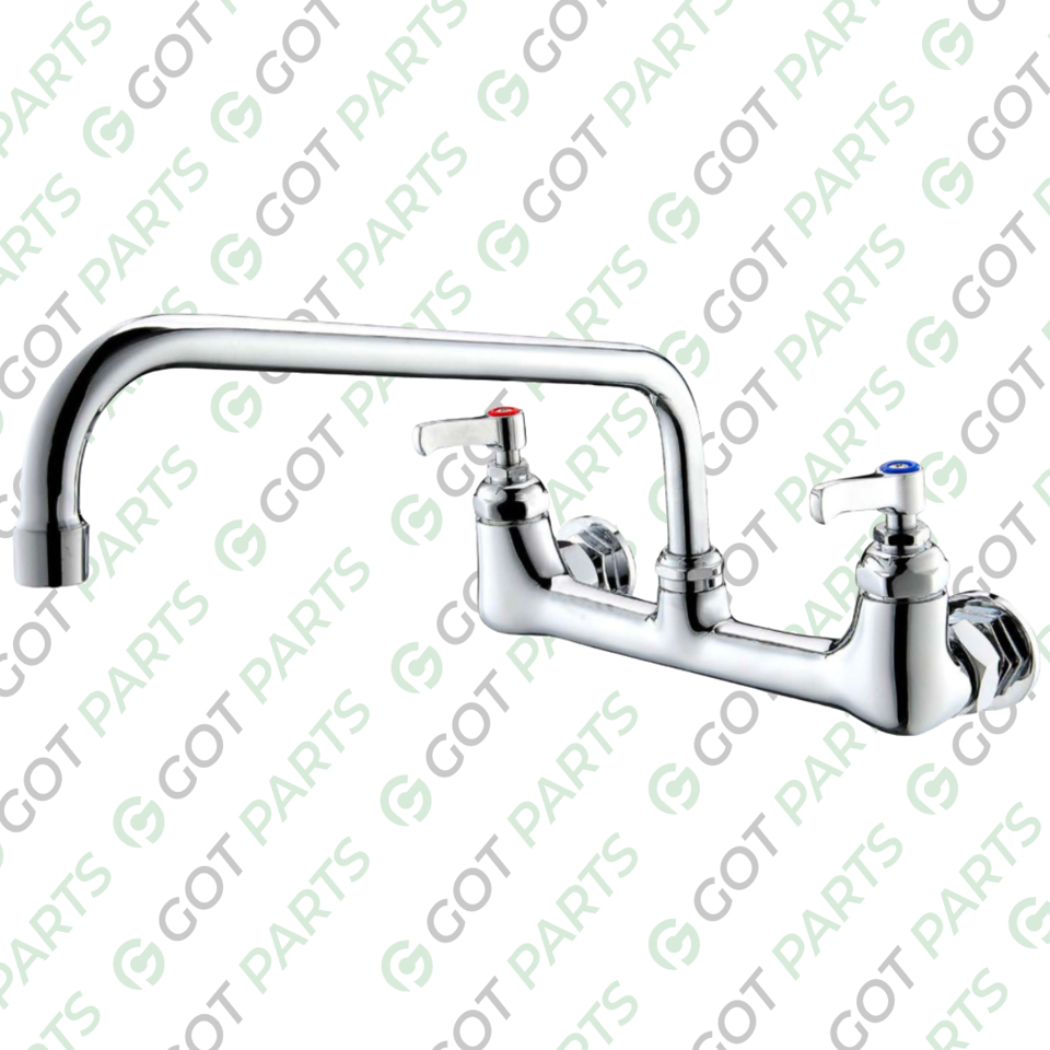 Brass Chrome Base Two Hole Wall Mount Kitchen Faucet, Stainless Steel 12” Spout