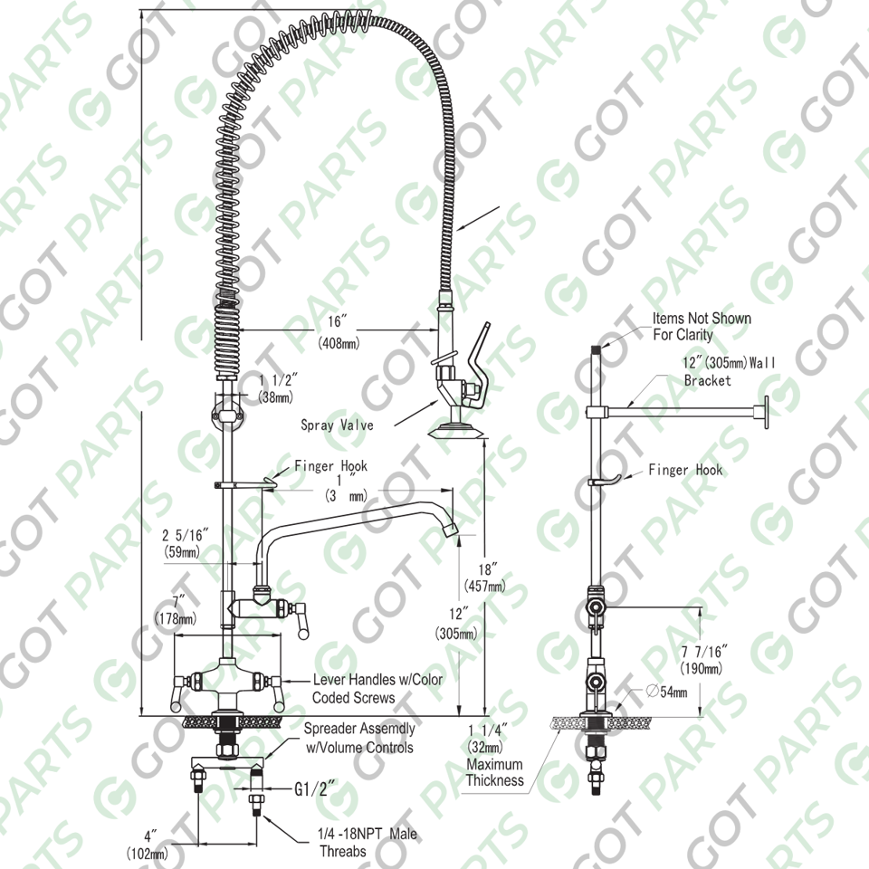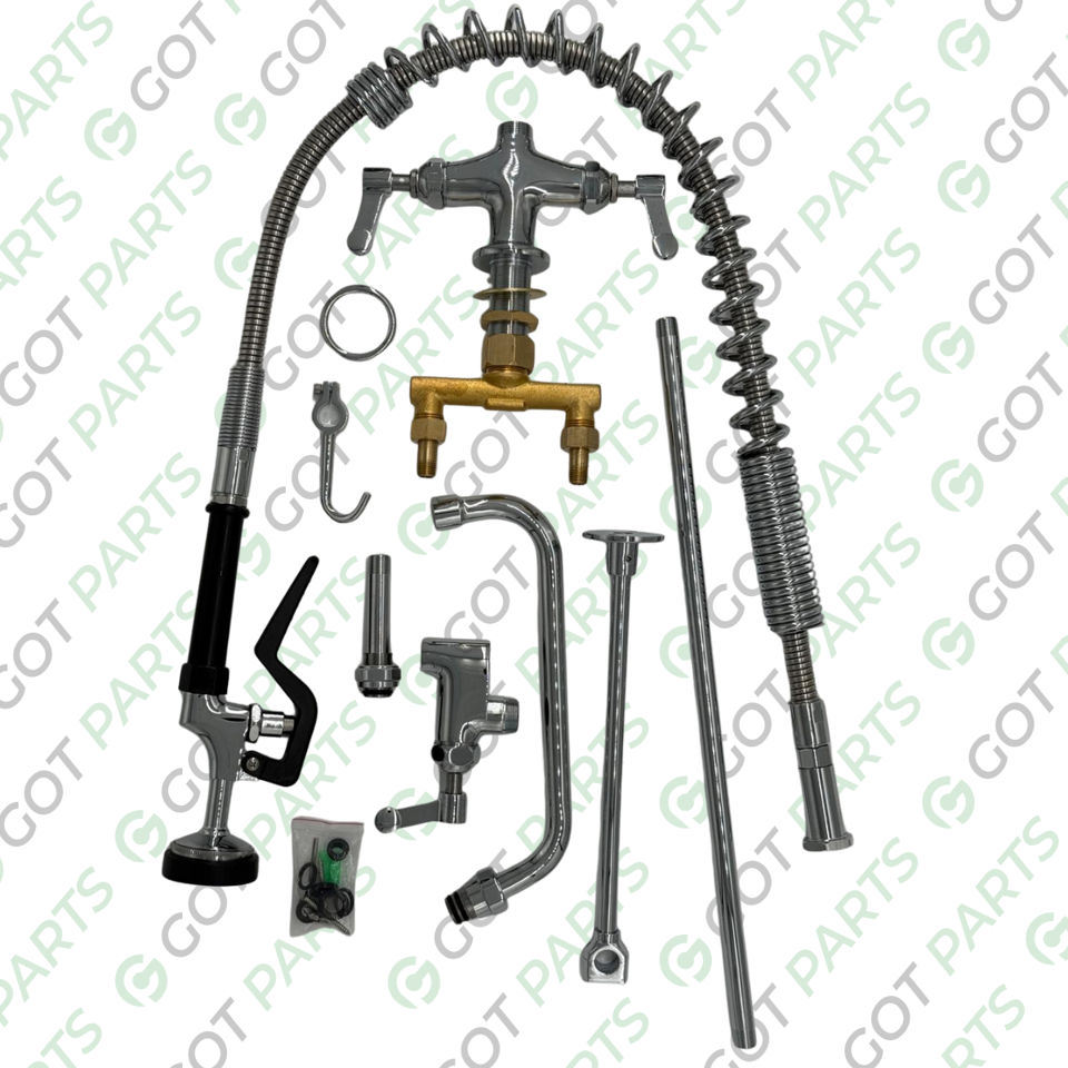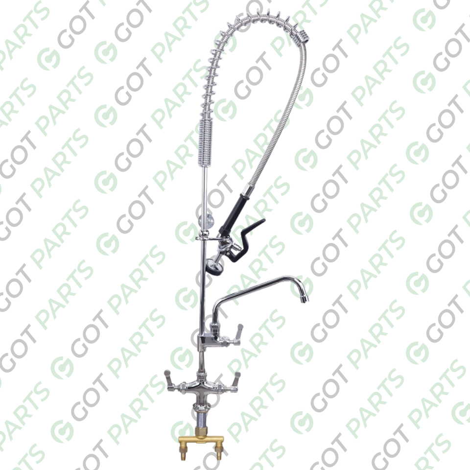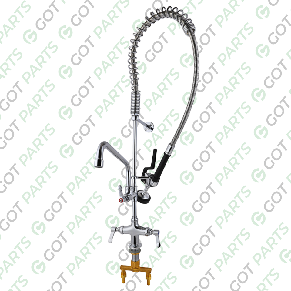 Brass Chrome Base Two Hole Deck Mount PreRinse Faucet, Stainless Steel 10” Spout, 47” Height